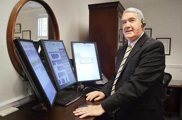 Housed in a quiet corner on the first floor of the law firm’s stately brick office building on McCallie Avenue, Peters spends his days gazing at a bank of three inverted LED screens. Through these backlit windows to a vast web of content, Peters sees all: the Internet, his emails, and the firm’s files on each of its clients.