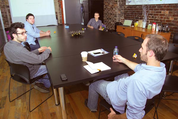 The snacks are on the conference room table at The Company Lab. But the miniature peanut butter cups aren’t the only things being chewed over. Two young men are there to practice their investment pitch for an idea they believe could make them millionaires.