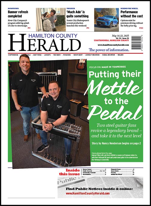 Six months later, the two men relaunched Emmons Guitar in Sevierville. As managing partner, Shiflett, 48, handles operations and marketing. O’Neil, who’s 15 years younger, oversees parts and service. (He knows the steel guitar inside and out but, like a lot of the bygone manufacturers, he doesn’t play.) Both are heavily involved in the making of each handcrafted instrument, with Shiflett preparing the 400-plus parts for each one and O’Neil assembling it “like a big giant Lego system.”
