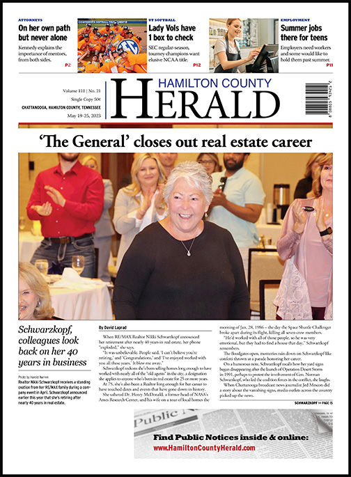 Whether or not Schwarzkopf’s concerns prove to be correct, she plans on enjoying her retirement from the deck of the house she and her husband built among 8 acres of trees in Sale Creek, an unincorporated community located in the far northern reaches of Hamilton County.