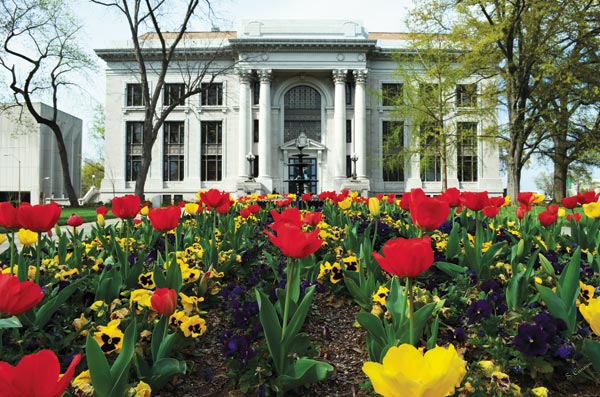 Following the long stretch of grey winter, the burst of color on the Hamilton County Courthouse lawn as spring goes into full bloom is a sight for sore eyes. (Photograph by Shelia Cannon)