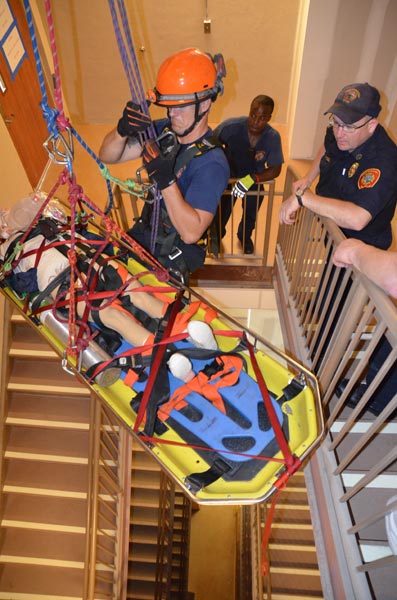 The Chattanooga Fire Department on Thursday, June 5 participated in an exercise at Memorial Hospital’s new North Tower. Fire Academy 2014 served as mock patients during the evacuation drill.