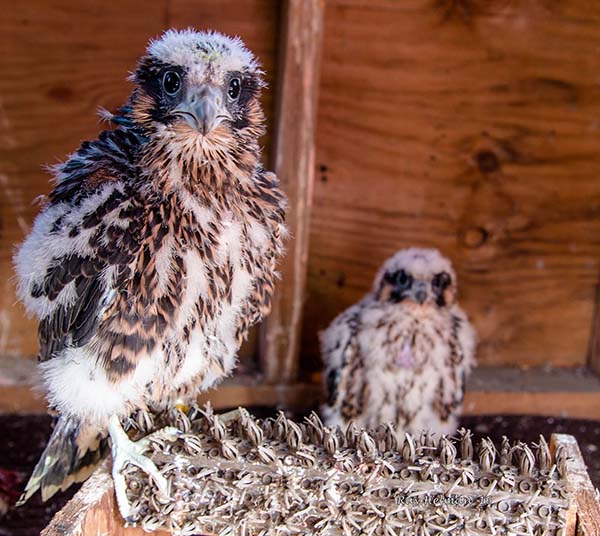 Two brother peregrines arrived at See Rock City on May 27, and were placed in a hack box to prepare for release into the wild at sunrise on Monday, June 13. These brother birds were from a breeder in Hastings, Minn., and were 43 days old.