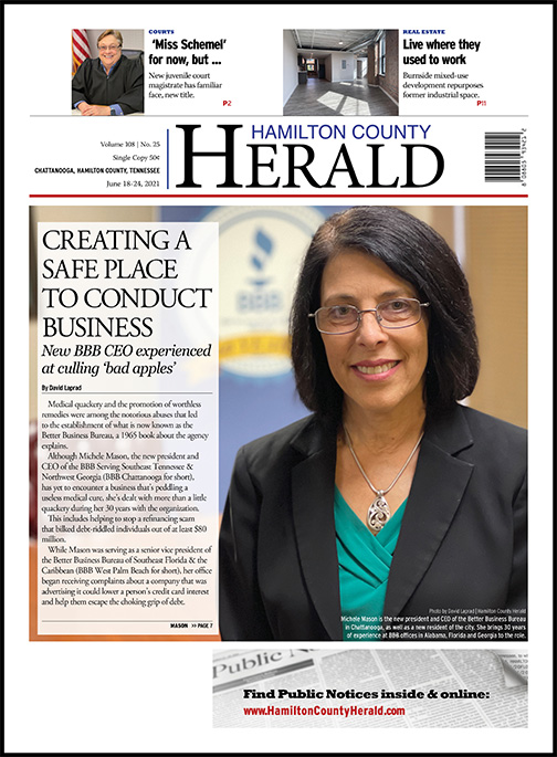 Although Michele Mason, the new president and CEO of the BBB Serving Southeast Tennessee & Northwest Georgia (BBB Chattanooga for short), has yet to encounter a business that’s peddling a useless medical cure, she’s dealt with more than a little quackery during her 30 years with the organization.