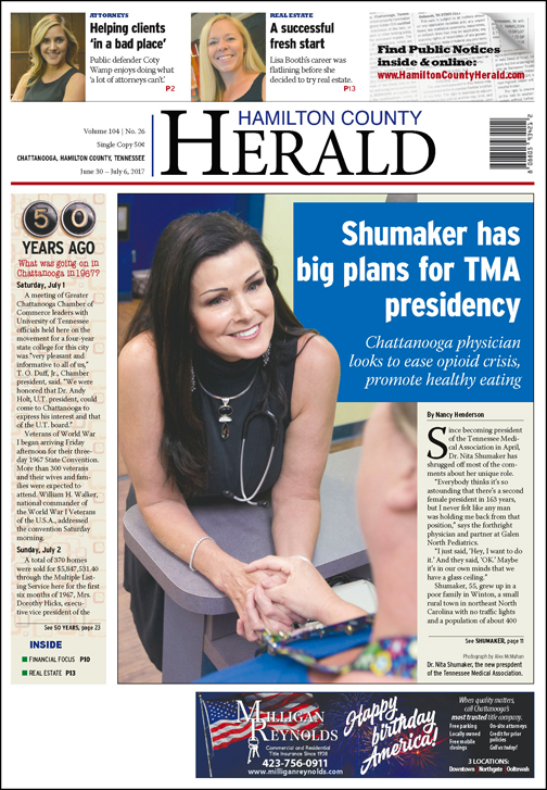 Shumaker has served in a number of leadership roles over the years, including chief of pediatrics at Children’s Hospital, chief of staff at Erlanger Medical System (again, she was the second woman to do so, after Dr. Phyllis Miller, who also served as the first female president of the Tennessee Medical Association from 2005-2006), and president of the Chattanooga & Hamilton County Medical Society.