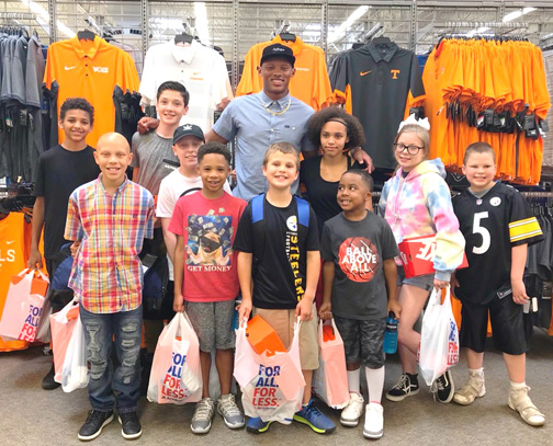 Boys and girls ages 6-16 flocked to the field to run drills and get hands-on instruction from Dobbs and some of his former UT teammates. The night before the camp, Dobbs treated 11 East Tennessee children to a shopping spree at Academy Sports.