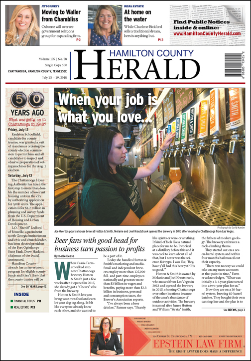 When Cassie Farmer walked into new Chattanooga brewery Hutton & Smith just a few weeks after it opened in 2015, she already got a “Cheers” vibe from the brewery.