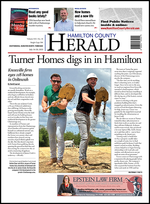 This is the case at James Creek, a 20-acre Ooltewah subdivision that will bring 118 homes to the growing municipality. Knoxville-based Turner Homes owns the land and will soon be building houses on it as it makes its first foray into residential development in the greater Chattanooga area.