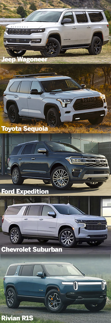 Maxing out at 8,300 pounds, the Suburban can’t tow quite as much as its main rivals. But a forthcoming refresh for 2025 offers innovative towing aids such as trailer-tire monitoring and turn-path guidance to keep your cornering smooth.