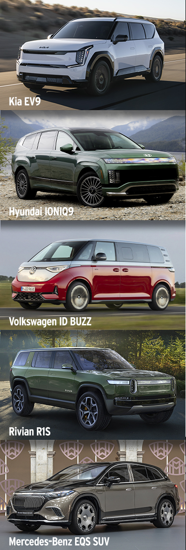 These EVs can seat six or seven passengers, haul lots of cargo and potentially have more than 300 miles of driving range. They also come standard with many advanced safety features.