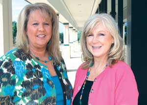 Amy French, right, is the program coordinator of the Chattanooga branch of the Alzheimer’s Association, which aims to eliminate the disease through the advancement of research, provide support for caregivers and reduce the risk of dementia though the promotion of brain health. Pictured with French is Cindy Lowery, development coordinator.
