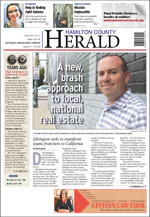 It’s a step up in scope from being CEO of The Edrington Team, which he helped to grow into Chattanooga’s top real estate crew while it was headquartered out of a different Berkshire Hathaway franchise – the Ben and Karen Kelly-owned Realty Center.