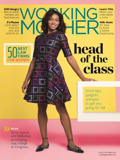 “The law firms that make Working Mother’s list are remarkable for their long-term commitment to retaining and promoting women lawyers,” says Meredith Bodgas, editor-in-chief of Working Mother. “One hundred percent of these firms provide flexible work arrangements and 57 percent of them offer sponsorship programs for high-potential women lawyers. That’s resulted in a jump in the number of women equity partners to 21 percent.”