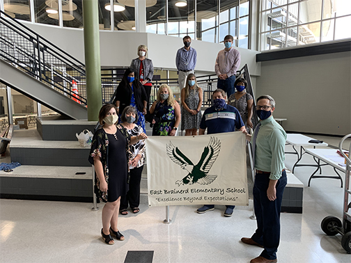 Members of the Community Partnerships Committee at Greater Chattanooga Realtors last week donated 115 $50 gift cards primarily to the teachers at East Brainerd Elementary. The tornado that ripped through the community in April decimated the school.