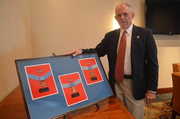 Jim Wade, executive director of the National Medal of Honor Museum of Military History, brought an exhibit of Medals of Honor to the quarterly lunch meeting of local Certified Residential Specialists, held Thursday, Aug. 21 at The Broad Street Grille.