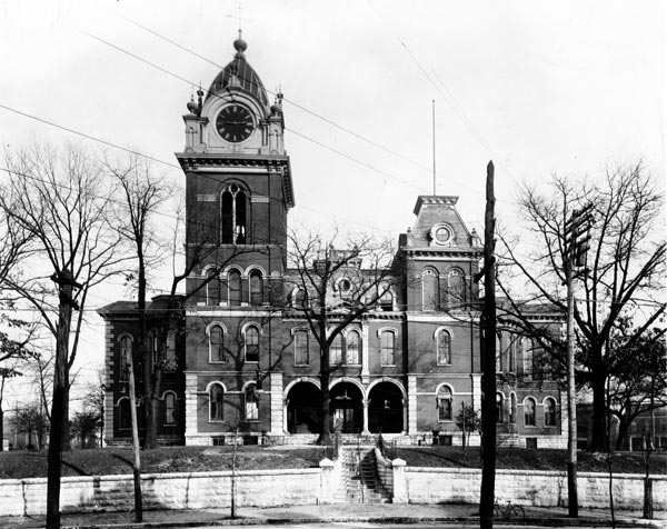 When Chattanooga was selected as the county seat in 1870, James Hall at Sixth and Market Streets was put to use as the courthouse. Later, the court was moved to an old brick building on Fourth and Market that had served as a prison during the Civil War. In 1879, a striking new courthouse was erected on the hill by Georgia Avenue, Walnut Street and Sixth and Seventh Streets. Featuring a 6,000-pound clock in an ornate four-sided tower, marble-top wash stands and large potbelly stoves, it was considered a masterpiece.