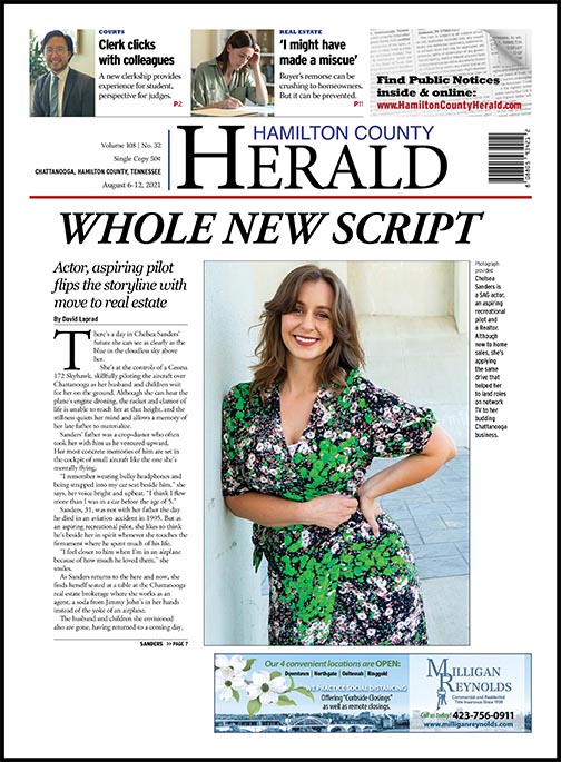 As Sanders returns to the here and now, she finds herself seated at a table at the Chattanooga real estate brokerage where she works as an agent, a soda from Jimmy John’s in her hands instead of the yoke of an airplane.