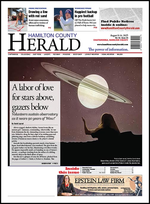 Kline, 33, is the planetarium’s director. A UTC physics graduate and former public school teacher, he was first drawn to astronomy by images like the one projected above him. More than a picture of Saturn hanging in the sky, it sparked the kind of wide-eyed awe that grabs hold of curious minds and doesn’t let go.