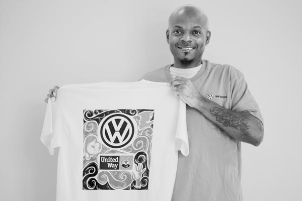 When Jerome Foster isn’t working on the Volkswagen Chattanooga assembly line, he’s pursuing his passion for art. He recently found a way to combine the two when his hand-painted design was chosen for the 2014 Volkswagen Chattanooga United Way t-shirts.