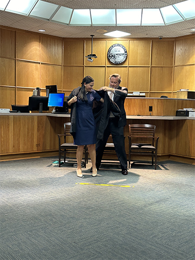 Chattanooga Bar Association president Steven Smith presents Judge Tori Smith with a robe given by the CBA.