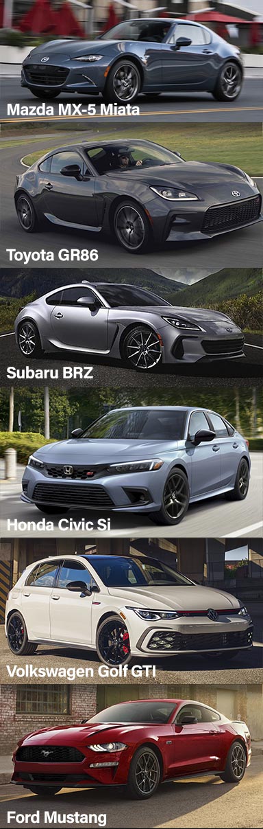There’s often a point when car enthusiasts are looking to purchase their first new performance car or sports car. Inflation and price creep have pushed many desirable models out of reach, but fortunately, a handful of automakers remain committed to offering thrill-making machines with wallet-friendly price tags. Edmunds’ car experts have rounded up six of the best with starting prices under $33,000. These vehicles have a high Edmunds rating and are listed by the manufacturer’s suggested retail price and include the destination charge.