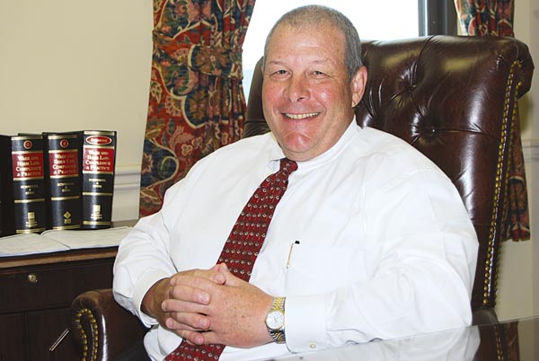 Even with 36 years as an attorney under his belt, Trumpeter’s blue-collar roots are still visible. He speaks with matter-of-fact, that’s-the-way-it-is candor, and he’s always one breath away from a wisecrack or a good story. “I have to find something to laugh about in everything I do. If I didn’t, I’d go nuts,” he says. (Example of Trumpeter’s sense of humor: As he’s posing for a photograph for this article, he tells the receptionist at Miller & Martin he’s having his picture taken for Just Busted Magazine.)