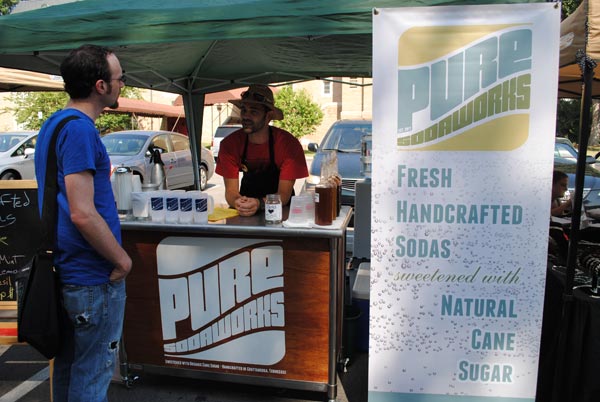 Right now the Pure Soda cart can be found during “Street Food Tuesdays” at Warehouse Row, “Fresh on Fridays” at Miller Plaza, the Brainerd Farmer’s Market, and the Chattanooga Market at the Tennessee Pavilion. They have also done Mise En Scenesters Film Club events, Chickamauga’s “Lady’s Night Out,” and Southside Art Stroll. They have an upcoming opportunity with Blue Cross Blue Shield to attend their on-site farmer’s market, and are developing a zero calorie stevia sweetened soda for the occasion, using actual stevia leaves.