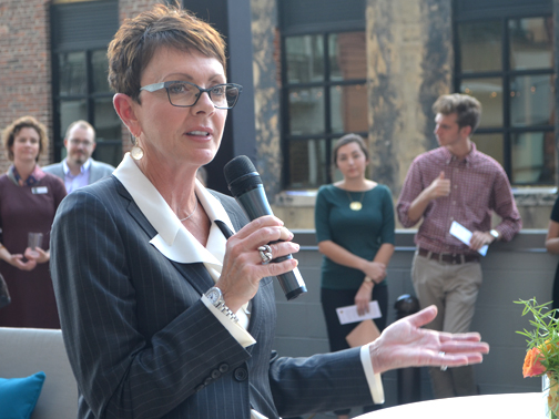 Kim White, president and chief executive officer of River City Company, and Boyd Simpson, chief executive of The Simpson Organization, spoke during the event.