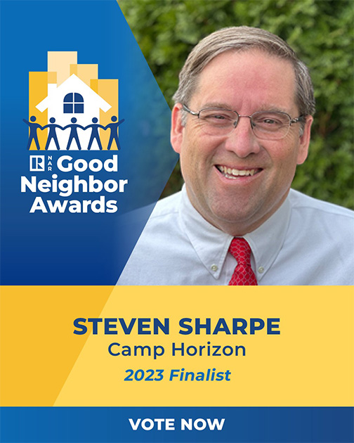 Sharpe is now a top-10 finalist for the National Association of Realtors’ Good Neighbor Award. Sharpe and Camp Horizon are competing for the Web Choice Favorite. The three candidates with the most votes will receive an additional $2,500 for their nonprofit.