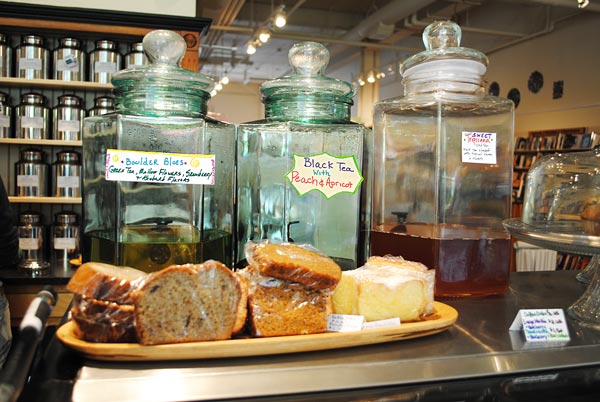For those who have trouble deciding, there are three different pre-made teas that the tearoom makes daily. The selection when I visited was Boulder Blues (a green tea with mellow flowers and safflowers), Black tea with peach and apricot, and a sweet Tropicana tea.