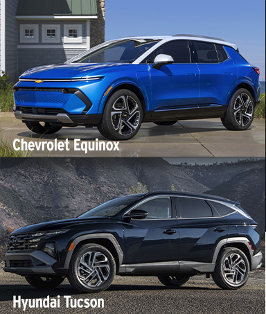The 2025 Hyundai Tucson beats out the 2026 Chevy Equinox due to its practicality in terms of its roomier passenger space and cargo area as well as a better warranty. For shoppers intent on getting the best combination of acceleration and fuel economy, check out the Tucson Hybrid.
