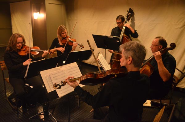 After taking a summer break during the symphony’s offseason, Warehouse Row and the Chattanooga Symphony and Opera have relaunched their series of live, informal musical performances at the retail destination on the third Thursday of each month. Treating shoppers and downtown business people to a monthly respite during their lunch hour, the Third Thursday concert series will feature alternating performances of woodwind and string quintets. The first performance took place September 19; additional perforances are scheduled to take place from 11:30 a.m. to 1 p.m. on October 17, November 21, and December 19. Pictured: The string ensemble performs at the Mercantile, a collection of locally-owned and operated eateries, on September 19. (David Laprad)