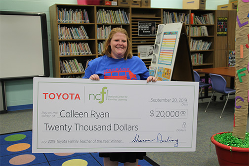 Ryan was surprised this month with a $20,000 check from Toyota and the NCFL to be used to continue her family literacy efforts with her mobile classroom.