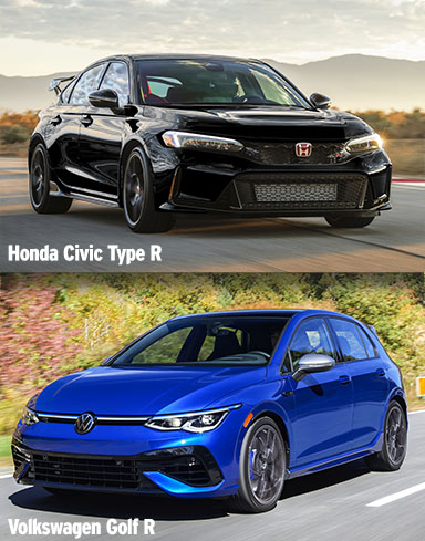 The 2023 Honda Civic Type R is sold as one well-equipped model that starts at $44,390. The 2023 Volkswagen Golf R has a starting price of $45,835 with the manual transmission and goes up from there. There’s also a 20th Anniversary Edition and an available dual-clutch automatic transmission for an additional $800.
