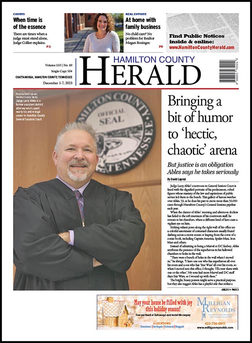 Judge Larry Ables’ courtroom in General Session Court is lined with the dignified portraits of his predecessors, robed figures whose mastery of the law and aspirations of public service led them to the bench. This gallery of heroes watches over Ables, 53, as he does his part to move more than 50,000 cases through Hamilton County’s General Sessions pipeline each year.