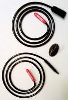The Turbo Snake has two options: a flat head for the shower and tub and a cylindrical head for the sink. It is a flexible, plastic covered 27-inch wire with a barbed head to grab onto the hair.