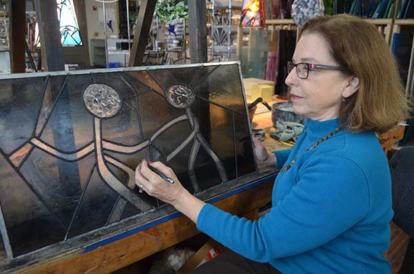 “There was a guy who had a stained glass retail shop in Ann Arbor. He did custom pieces and taught classes,” she says. “We started dating, and I decided I wanted to try it. I was instantly hooked.”